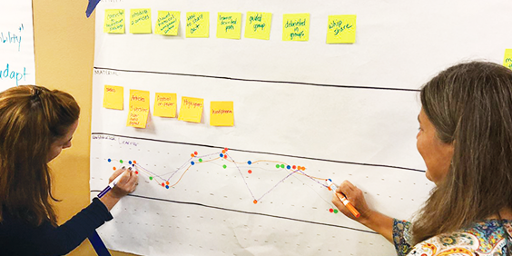 Integrated Arts Educator Carole Storro recalls walking past the full-panel windows of the school conference room at AES several times a day. It was where the first UDL team debriefed Instructional Rounds and the multi-colored mosaic of Post-it Notes placed strategically on chart papers around the room piqued her curiosity and influenced her desire to know more about UDL.